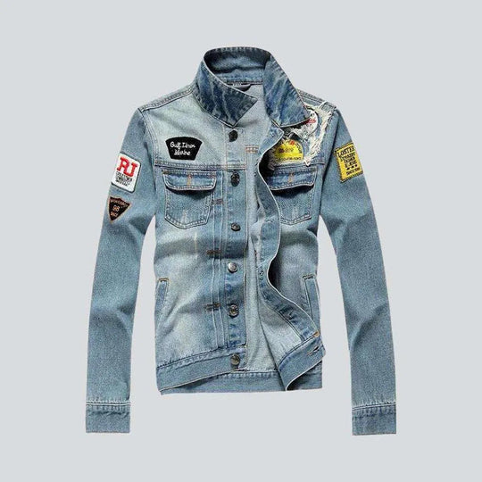 Distressed slim men's denim jacket