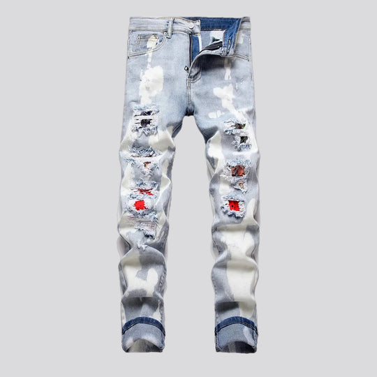 Cracked patch skinny men's jeans