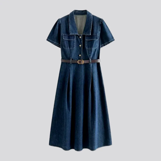 Elastic midi casual jeans dress